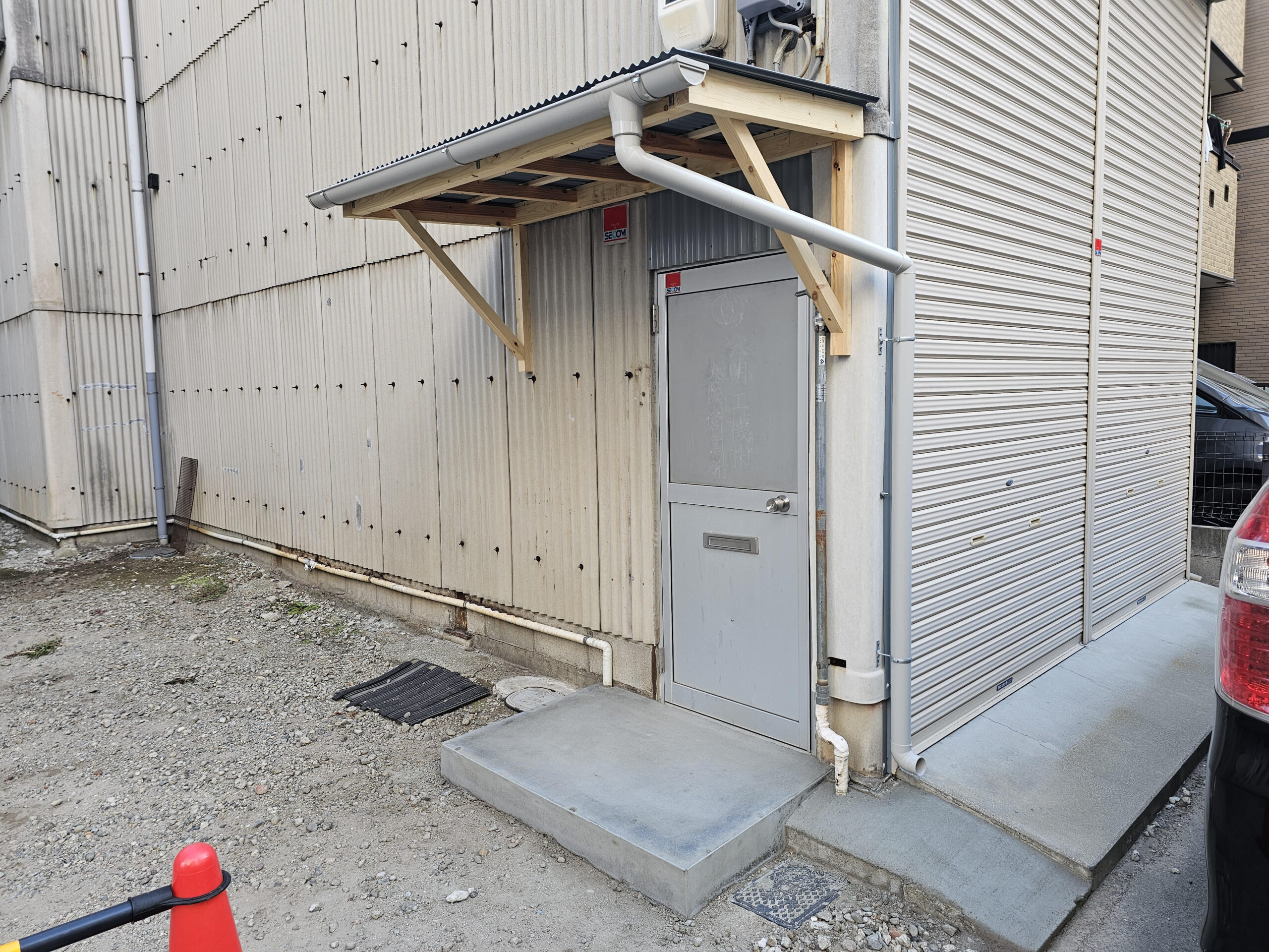 入口の所に庇とポーチをつくる工事です。