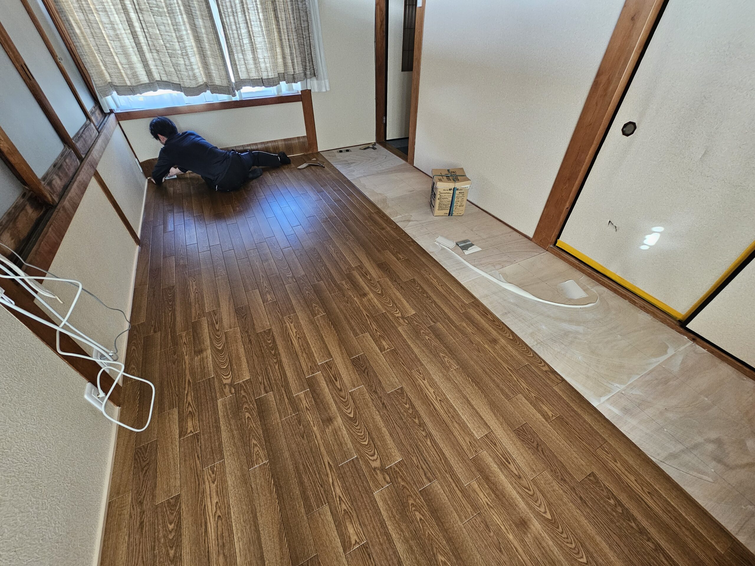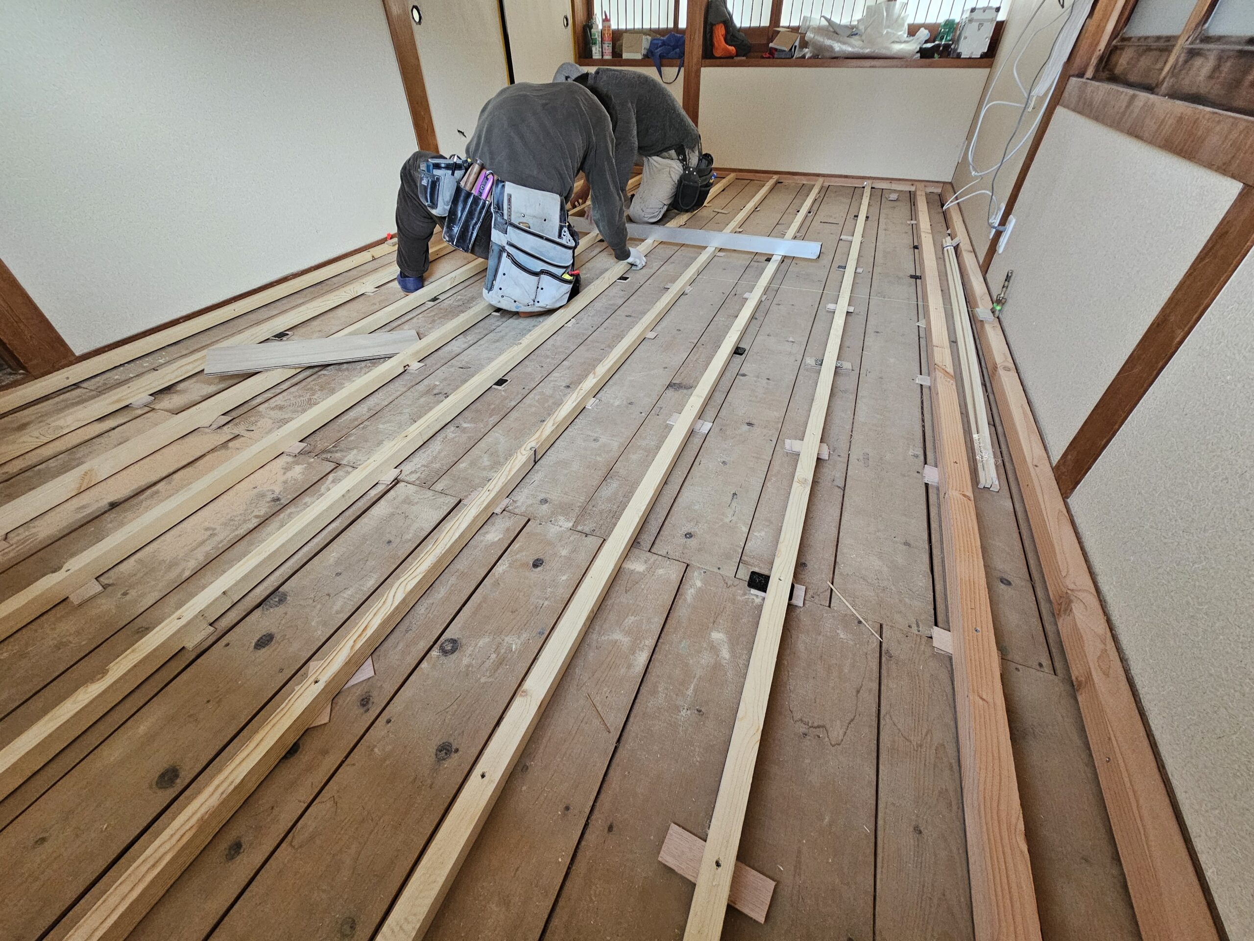 畳を捨ててから下地を水平に調整しながら進めていきます。